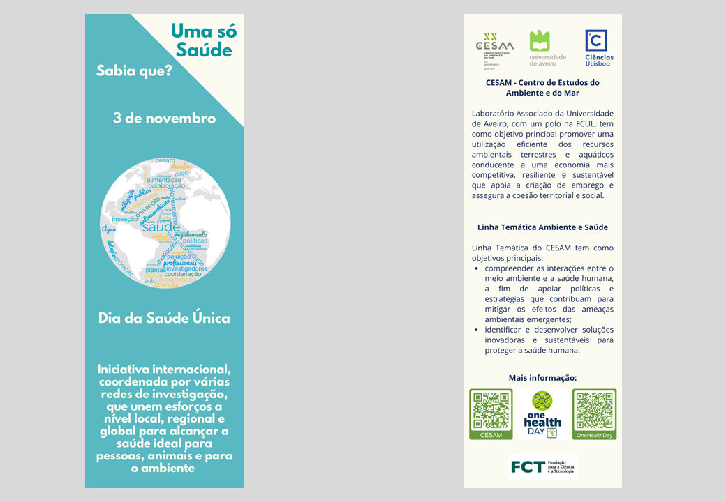 The Thematic Line Environment and Health of the Centre for Environmental and Marine Studies (CESAM), which is a Research Unit of the University of Aveiro (UA) , Portugal, will celebrate the One Health Day with a local event, on 3 November.