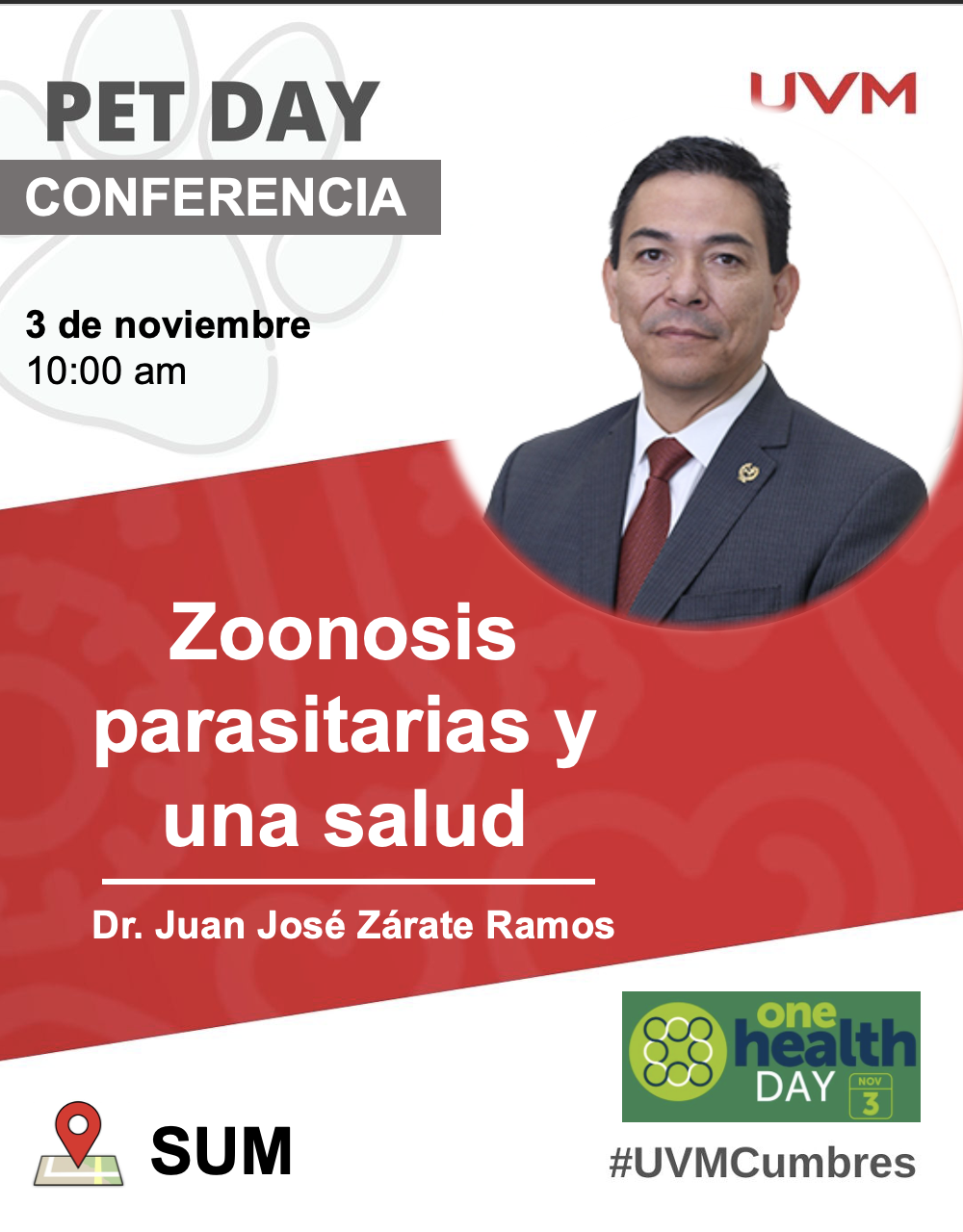 The event will be part of the "One Health" world day and will have a face-to-face format where the speakers will present their lectures addressing various topics such as:: "One Health and parasitosis", workshops that will talk about the "Panel for the veterinarians of the future: challenges and opportunities for leaders and entrepreneurs" modules of free clinical consultations for pets; veterinarians and veterinary students performing together social awareness activities on pet’s health care, this will result in preventing, detecting and responding effectively to the health challenges that arise in the world due to the relationship between humans, animals and the environment.