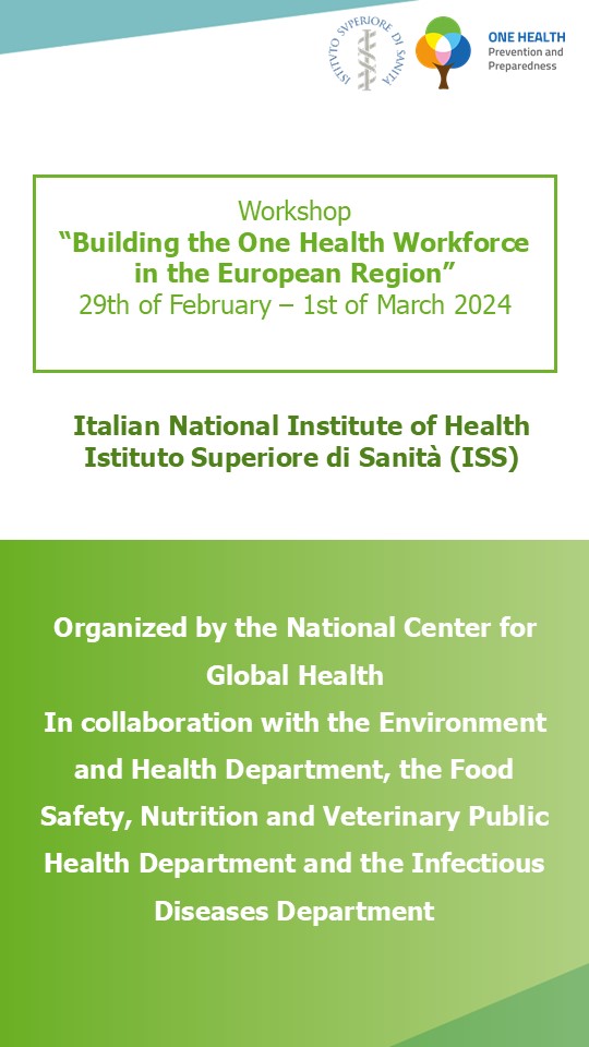 The Italian National Institute of Health (Istituto Superiore di Sanità) ran a consultative workshop with One Health experts from the European region on the 29th of February and the 1st of March 2024 with the main aim of gathering inputs and perspectives about the competencies required for One Health prevention and preparedness strategies and about the concept of One Health workforce.